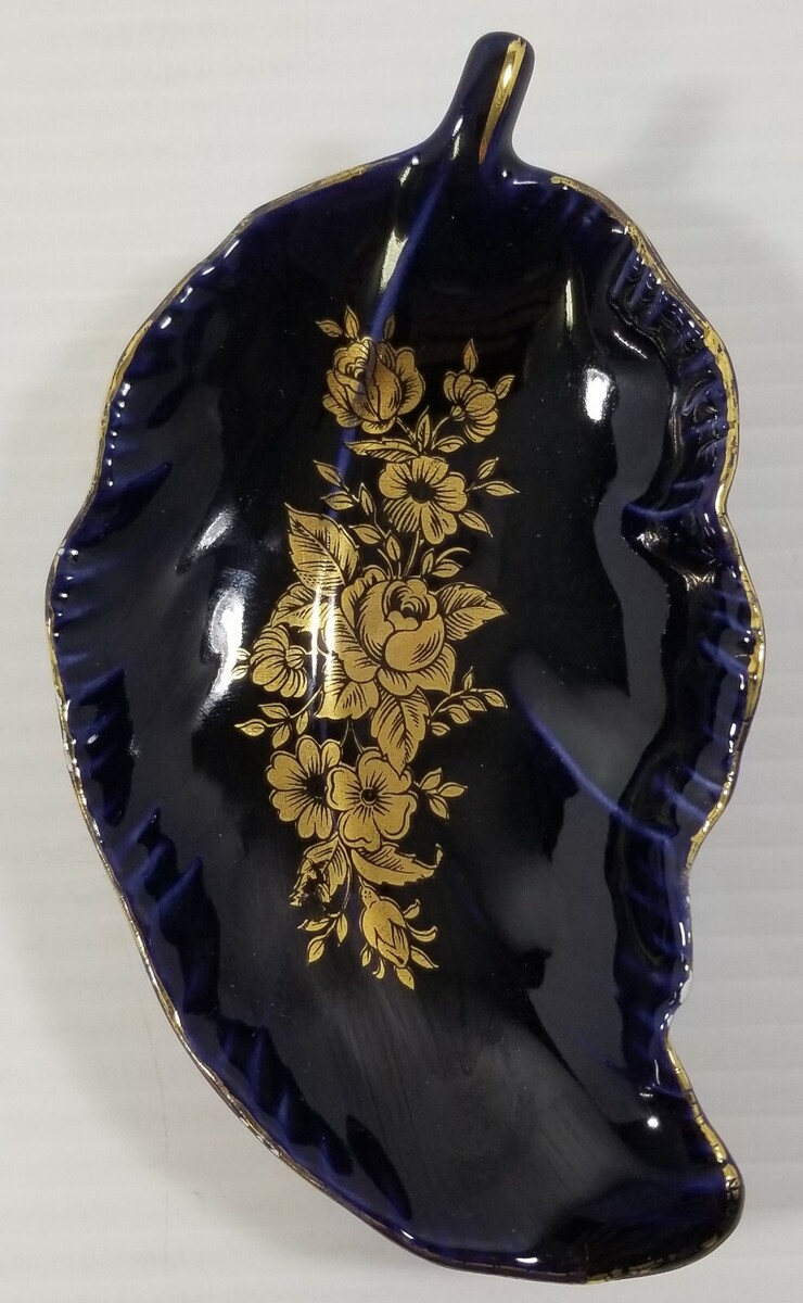 VC) Vintage Peint A La Main Blue Leaf Gold and 49 similar items
