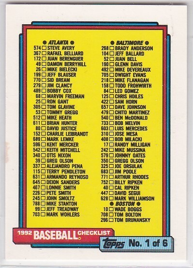 M) 1992 Topps Baseball Trading Card - Checklist #131 No. 1 of 6