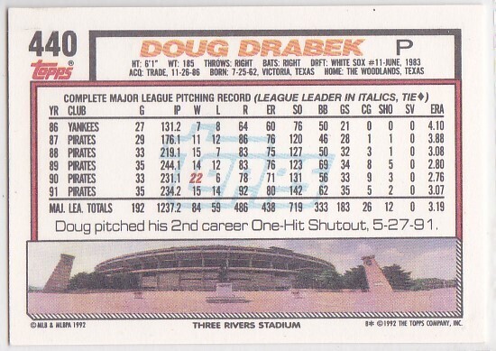 M) 1992 Topps Baseball Trading Card - Doug Drabek #440