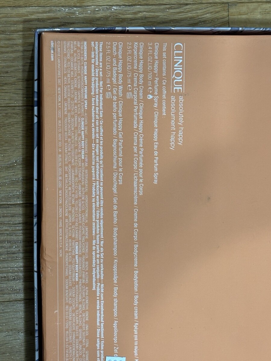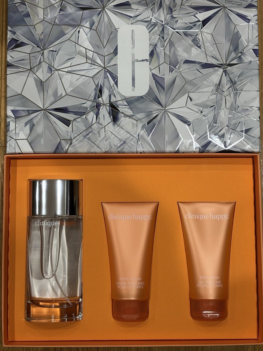Clinique Absolutely Happy 3pc Set Happy Perfume 3.4oz Cream Wash 2.5oz Ea Free.