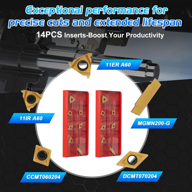 Multi-functional Design: This set of lathe turning tool kit includes various types of blades to meet your different needs in lathe machining. Whether you are doing rough or precision machining, you can find suitable tools for the operation