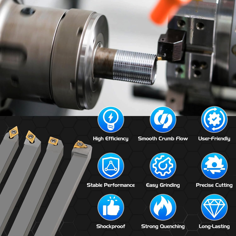 Heavy-Duty Durable Construction: Holders craft from high-quality cemented carbide and tungsten steel for unmatched hardness; inserts with durable CVD coating boost cutting performance. As standalone lathe tooling, it reduces frequent changes and stands up to tough jobs in long-hour use