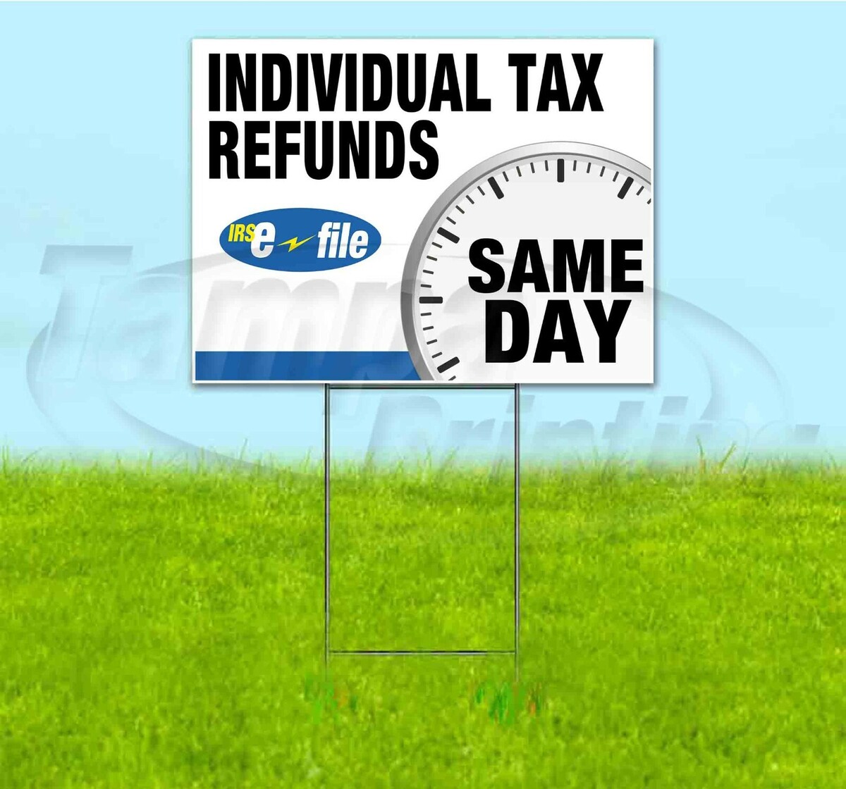 INDIVIDUAL TAX REFUNDS IN SAME DAY 18x24 Yard Sign WITH STAKE Corrugated Bandit