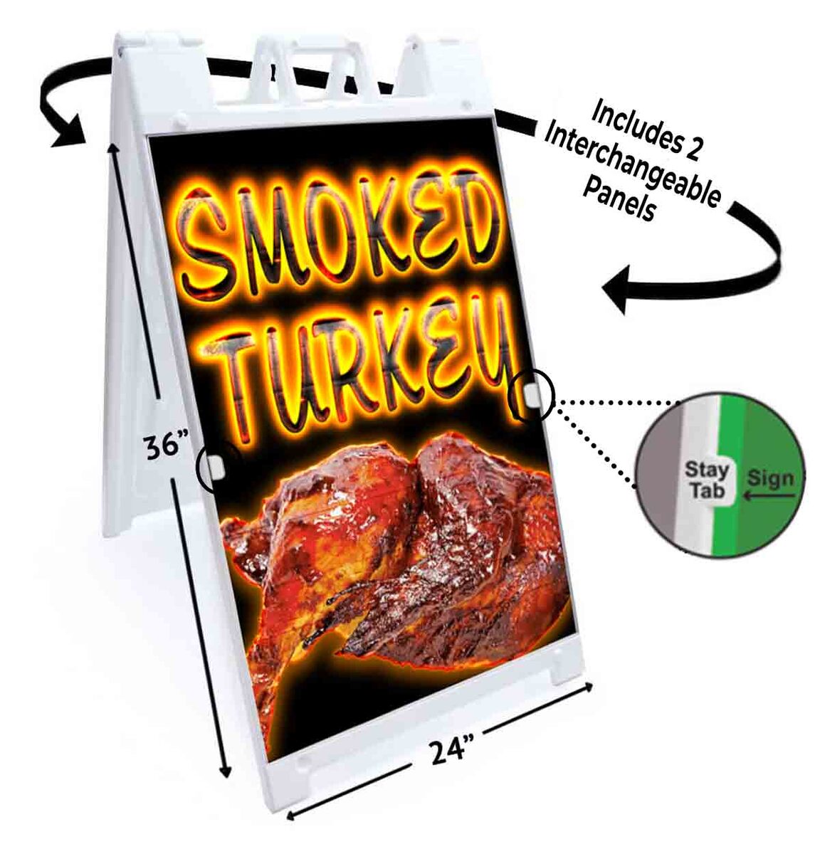 SMOKED TURKEY FIRE LEG Signicade 24x36 Aframe Sidewalk Sign Banner Decal FOOD
