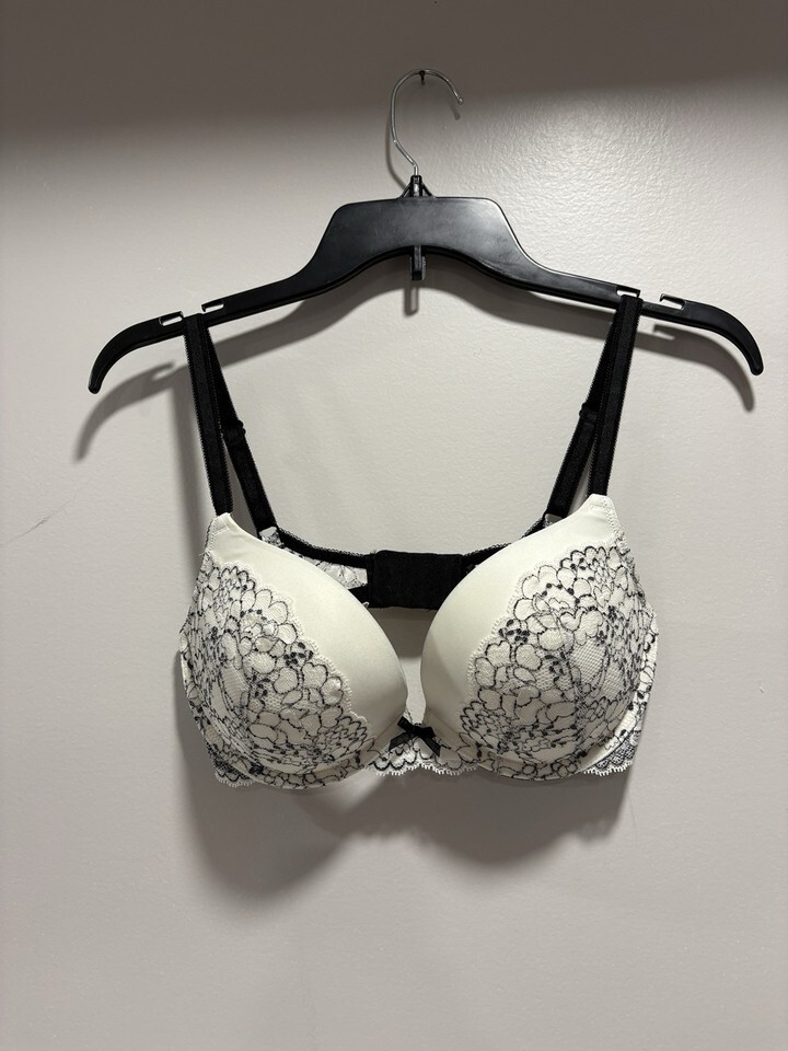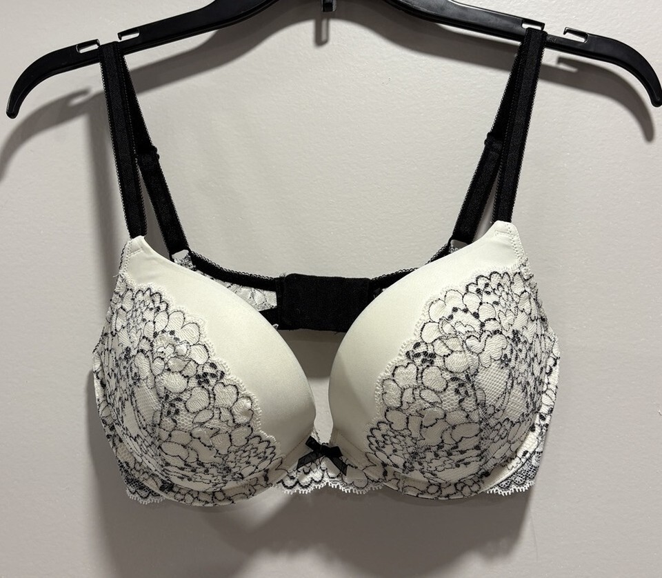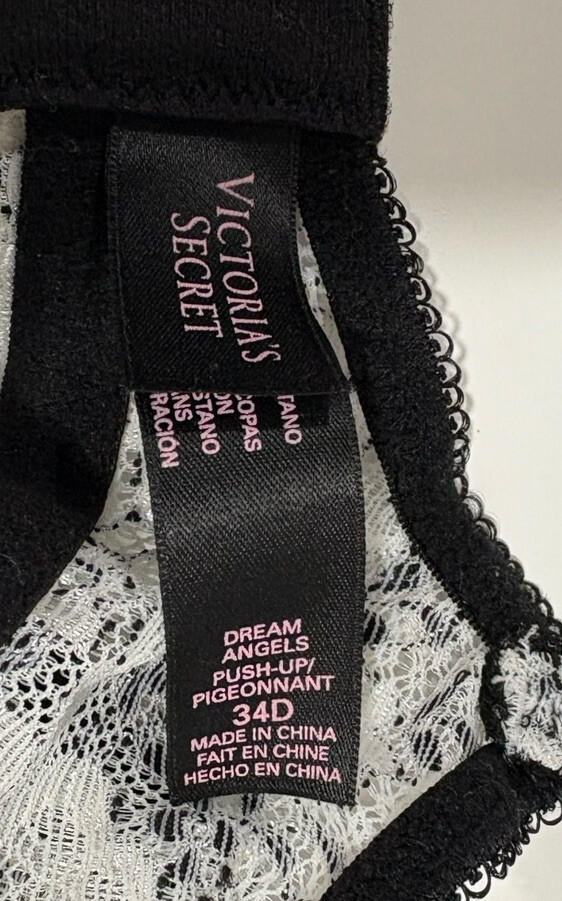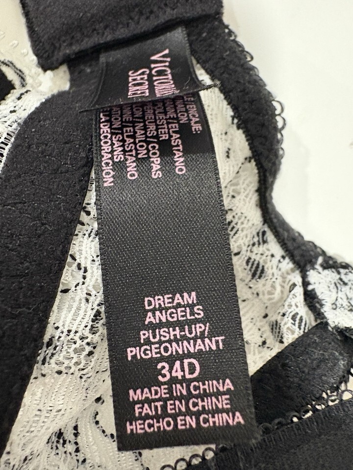 Victoria Secret Dream Angels Push Up White Black Lace Bra 34D
