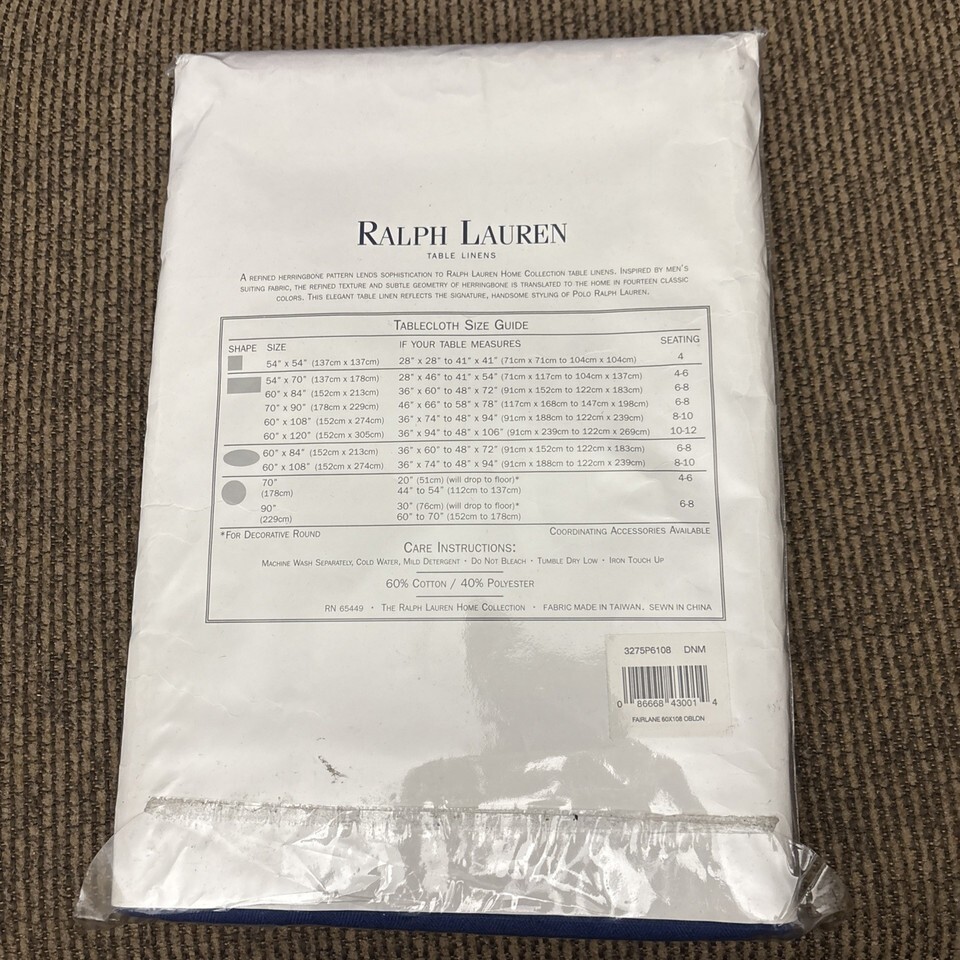 NEW Ralph Lauren 60x108 Oblong Navy Blue Fairlane Chevron Tablecloth
