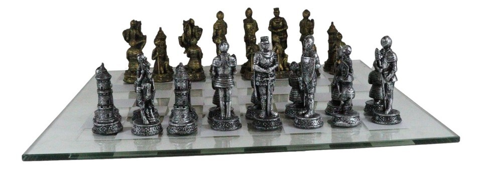 Ebros Medieval Warfare Age Of Knights Kings Resin Chess Pieces With Glass Board Set