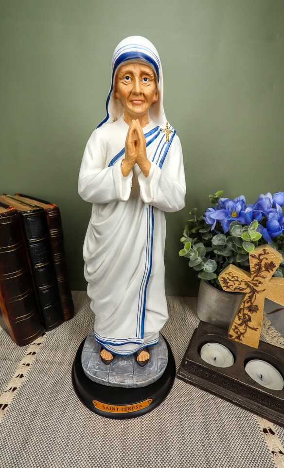 ? This Catholic Saint Mother Teresa Statue is made of designer composite resin, hand painted and polished. Color Tone may vary from pictures.