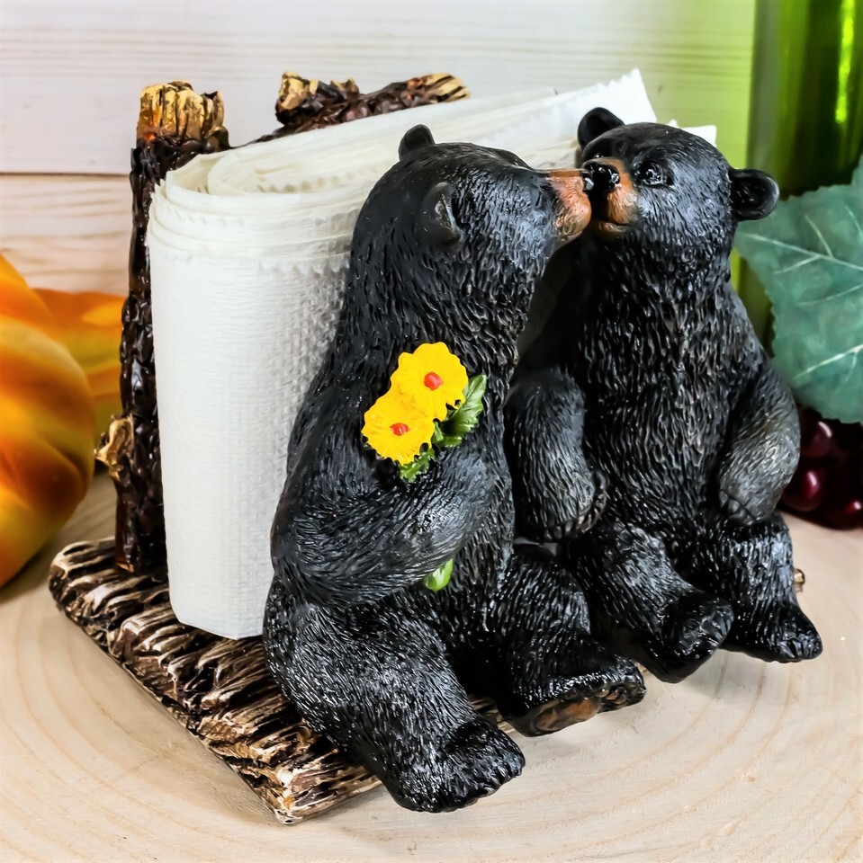 Ebros Romantic Kissing Black Bears Seated By Tree Logs Kitchen Napkin Holder 5"H