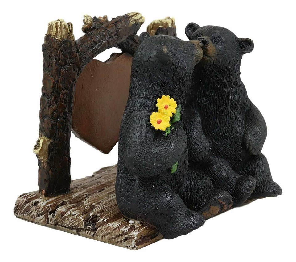 ? This Romantic Kissing Black Bear Couple Napkin Holder figurine is made of cold cast resin, hand painted and polished. Color tone may vary.