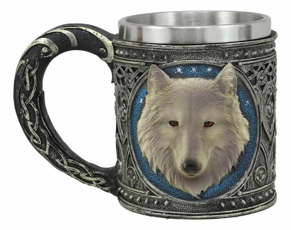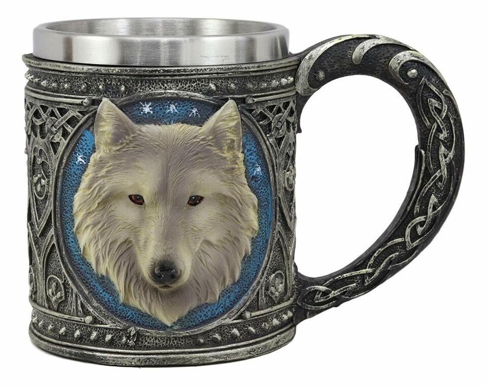 Ebros Gift Alpha Direwolf Wolf Celtic Tribal Magic Resin 16oz Drinking Mug