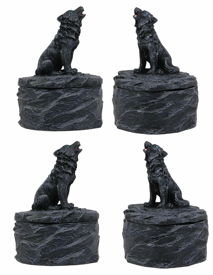 Ebros Howling Gray Alpha Wolf Mini Jewelry Decorative Box (Pack of 4 Wolf Boxes)