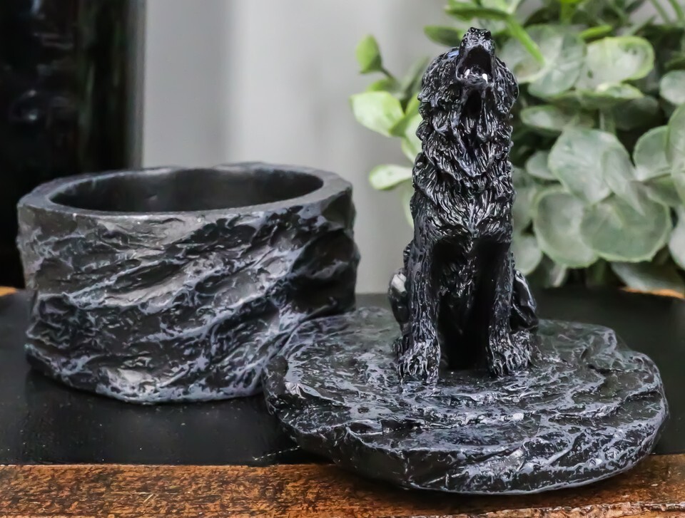? Each Howling Gray Wolf Round Jewelry Box Figurine is made of designer polyresin, individually hand painted and polished individually.