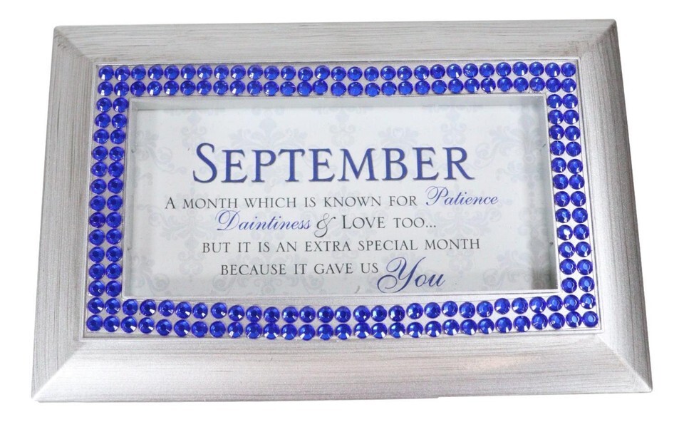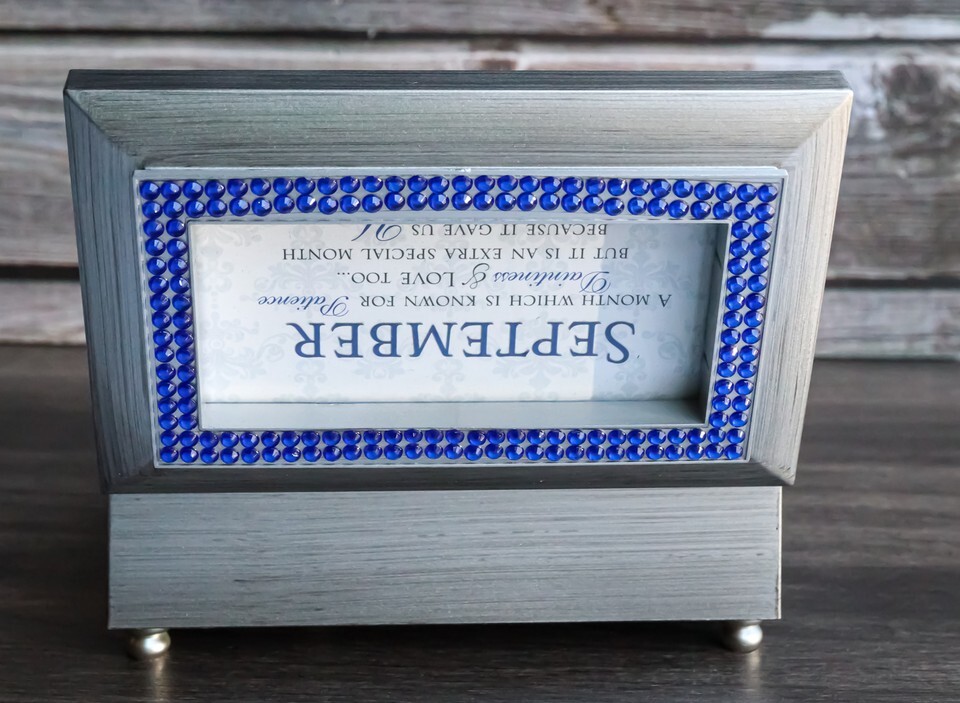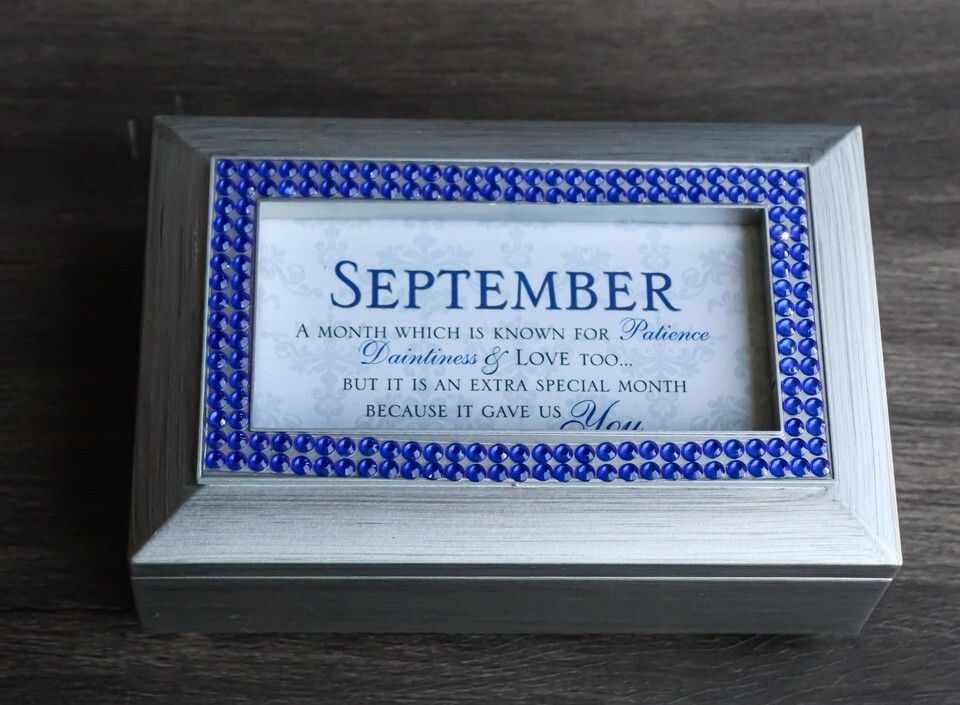 September Sapphire Patience And Love Birthstones Silver Tone Musical Trinket Box
