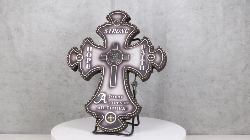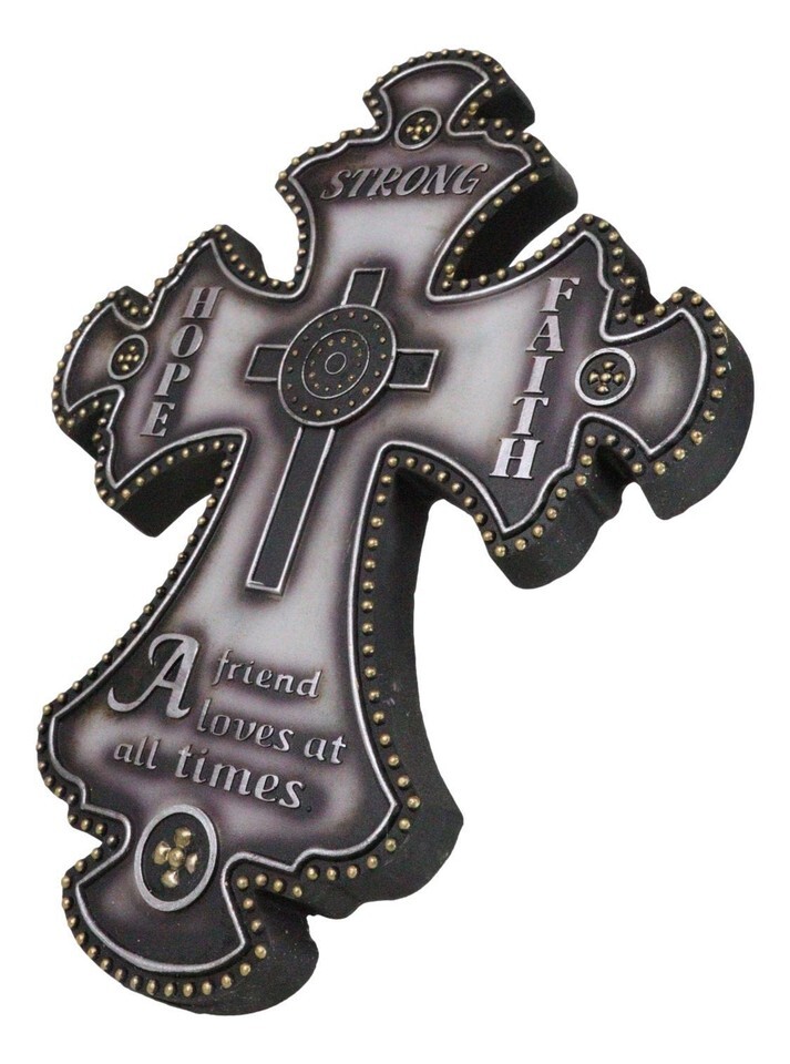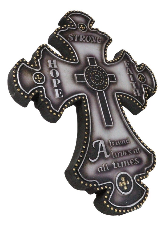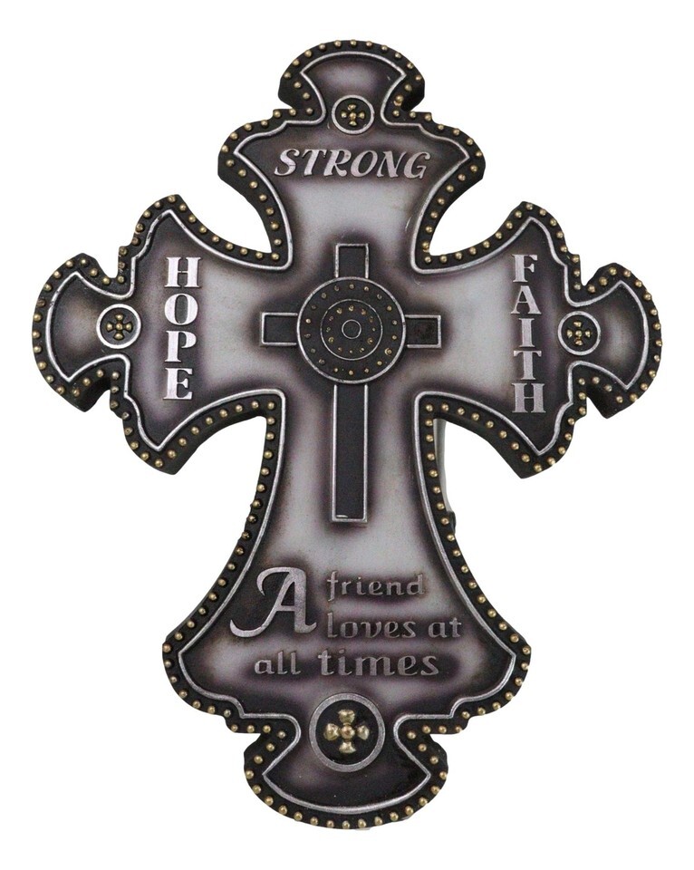 ? This Fleur De Lis Wall is a stunning embodiment of timeless values and elegant design. This beautifully crafted wall features the classic Fleur De Lis shape, symbolizing purity and light. Adorned with the inspirational words "Hope," "Faith," "Strong," and the heartfelt phrase "A friend loves at all times," this piece serves as a constant reminder of enduring friendship and unwavering faith.