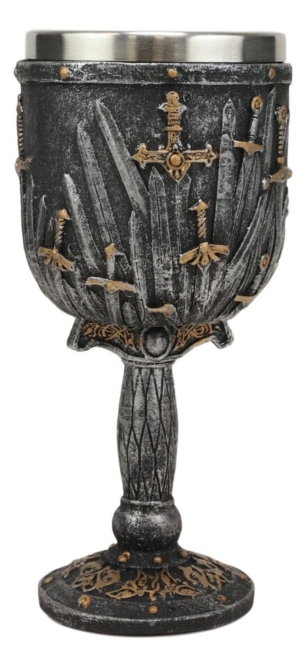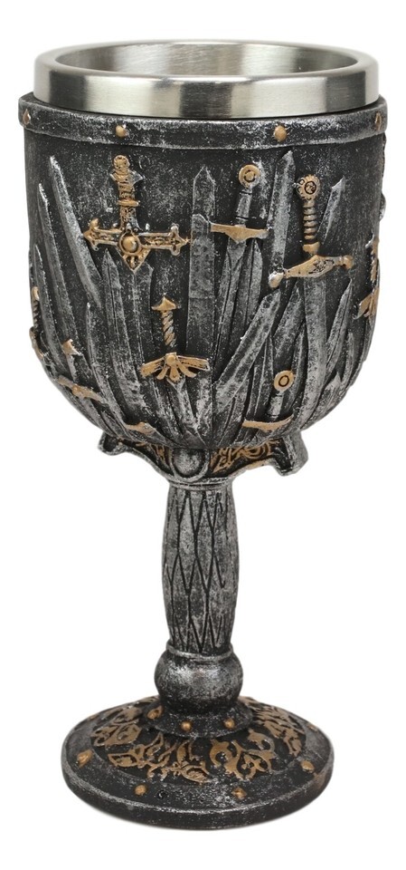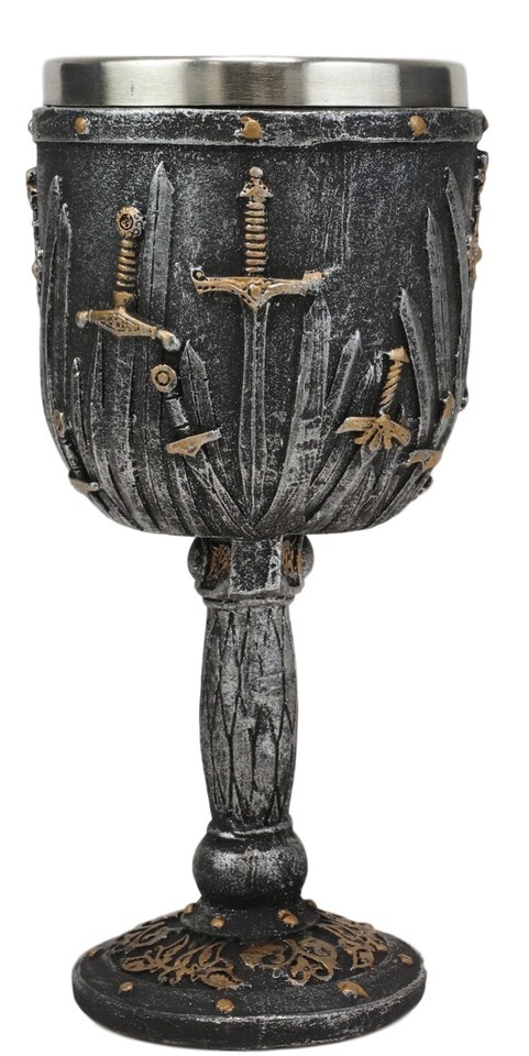 Valyrian Steel Swords And Armory With Excalibur Sword Hilt Stem Wine Goblet 6oz
