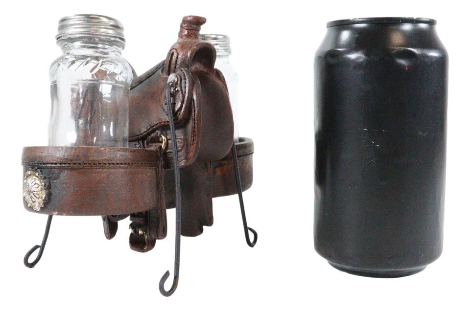 Ebros Country Western Cowboy Horse Saddle Silver Conchos Salt Pepper Shakers Holder