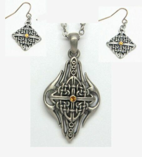 MYSTICA CELTIC PEACE SIGN ALLOY NECKLACE EARRINGS SET LED FREE METAL