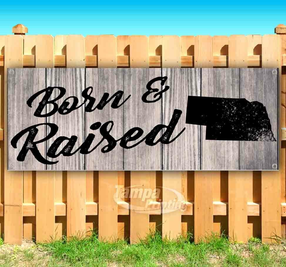 Born & Raised Nebraska Advertising Vinyl Banner Flag Sign Many Sizes Available