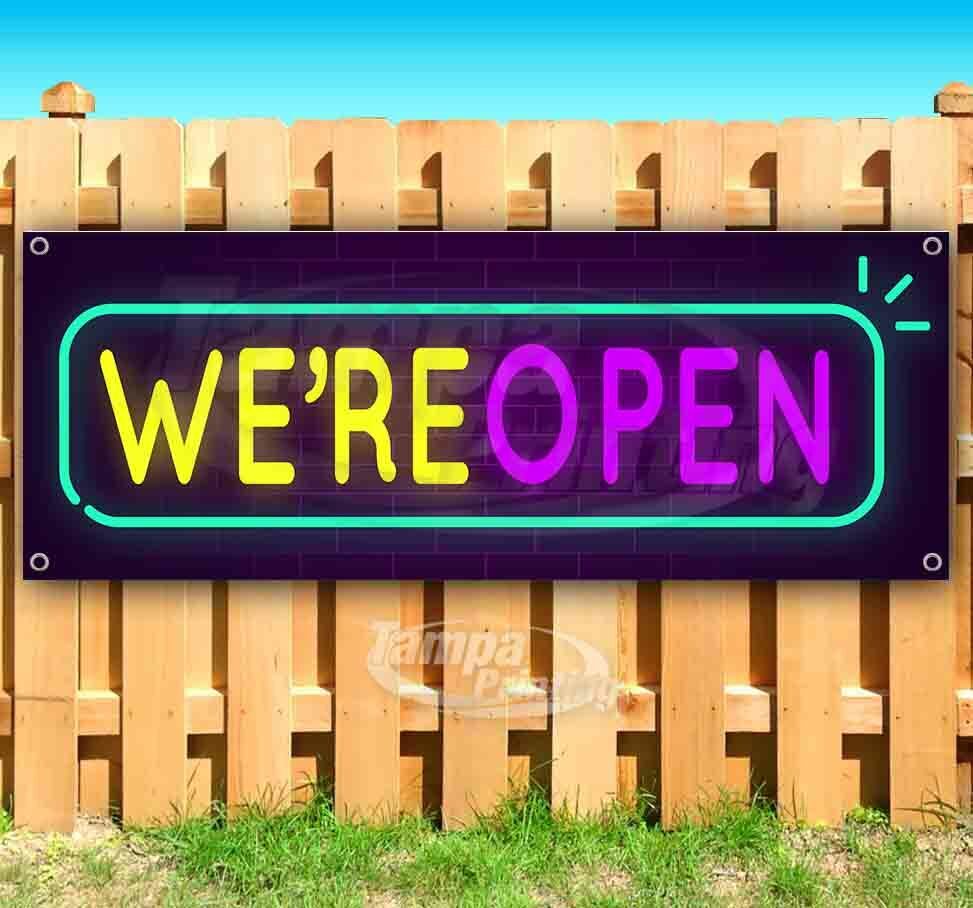WE'RE OPEN Advertising Vinyl Banner Flag Sign Many Sizes NEON RESTAURANT