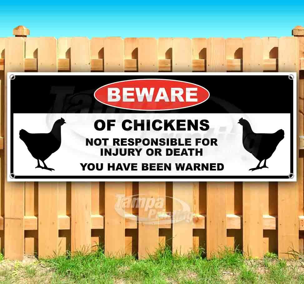 BEWARE OF CHICKENS Advertising Vinyl Banner Flag Sign Many Sizes USA