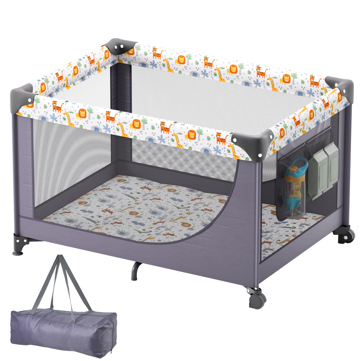 Quick Folding Portable: Lightweight and foldable, our quick-folding baby play yard is effortless to set up and store โ no tools required! After playtime, simply fold it up and store it in the included carrying bag, taking with you for outdoor travels