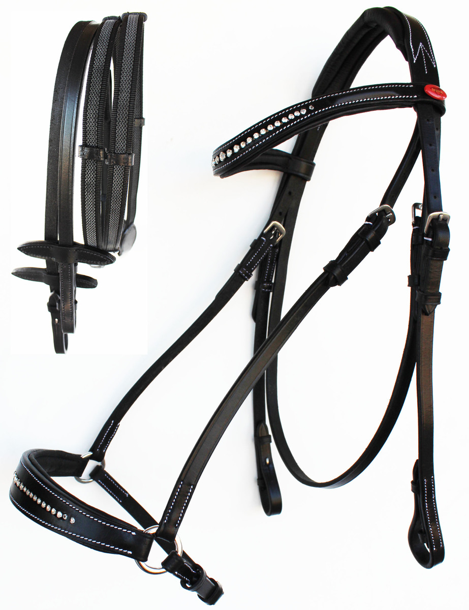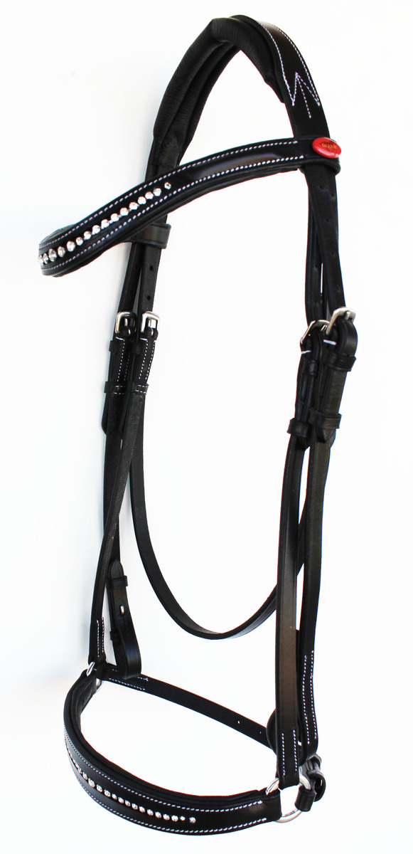English Horse COB All Purpose Padded Leather Bridle Crystals Stainless Steel