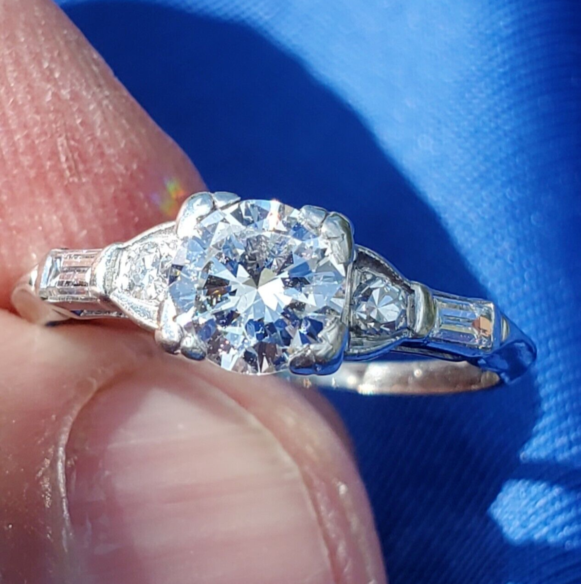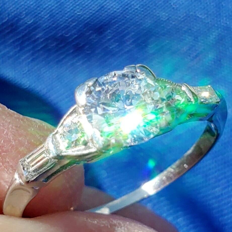 Earth mined Diamond Deco Engagement Ring Antique Platinum Statement Solitaire 6