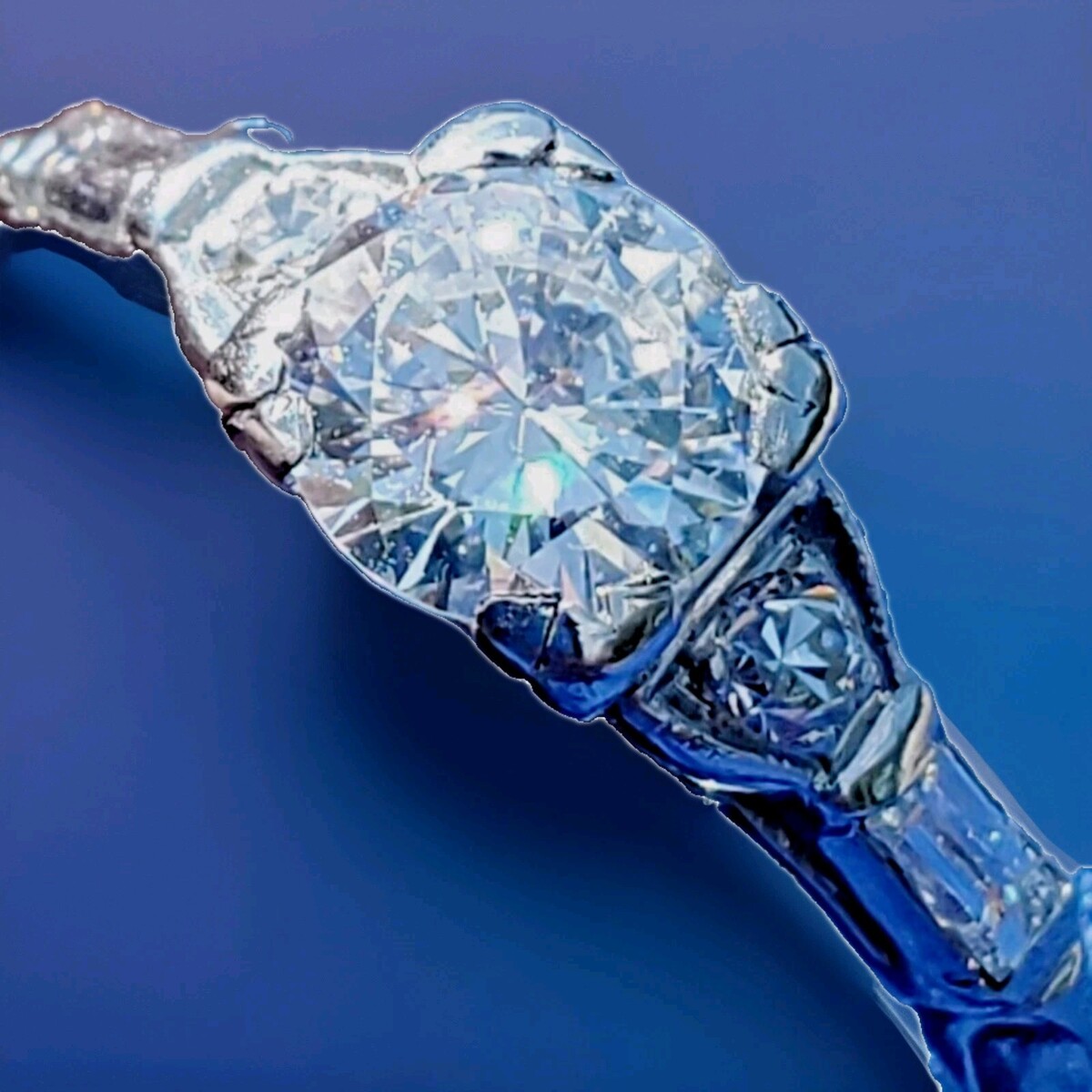 Exotic jazz era antique diamond engagement ring.
