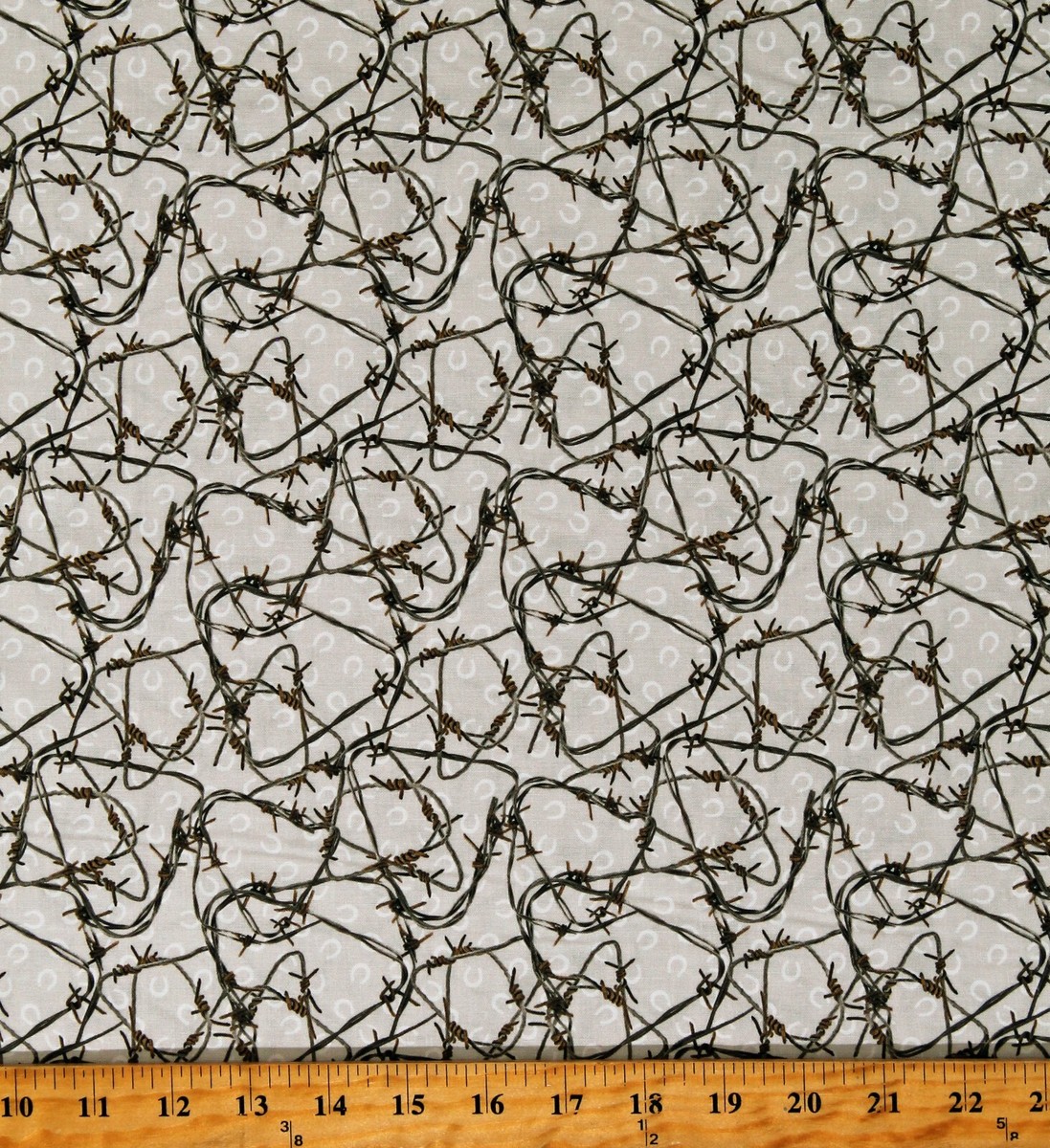 Cotton Cowboys Barbed Wire Horse Shoes Gray and 50 similar items