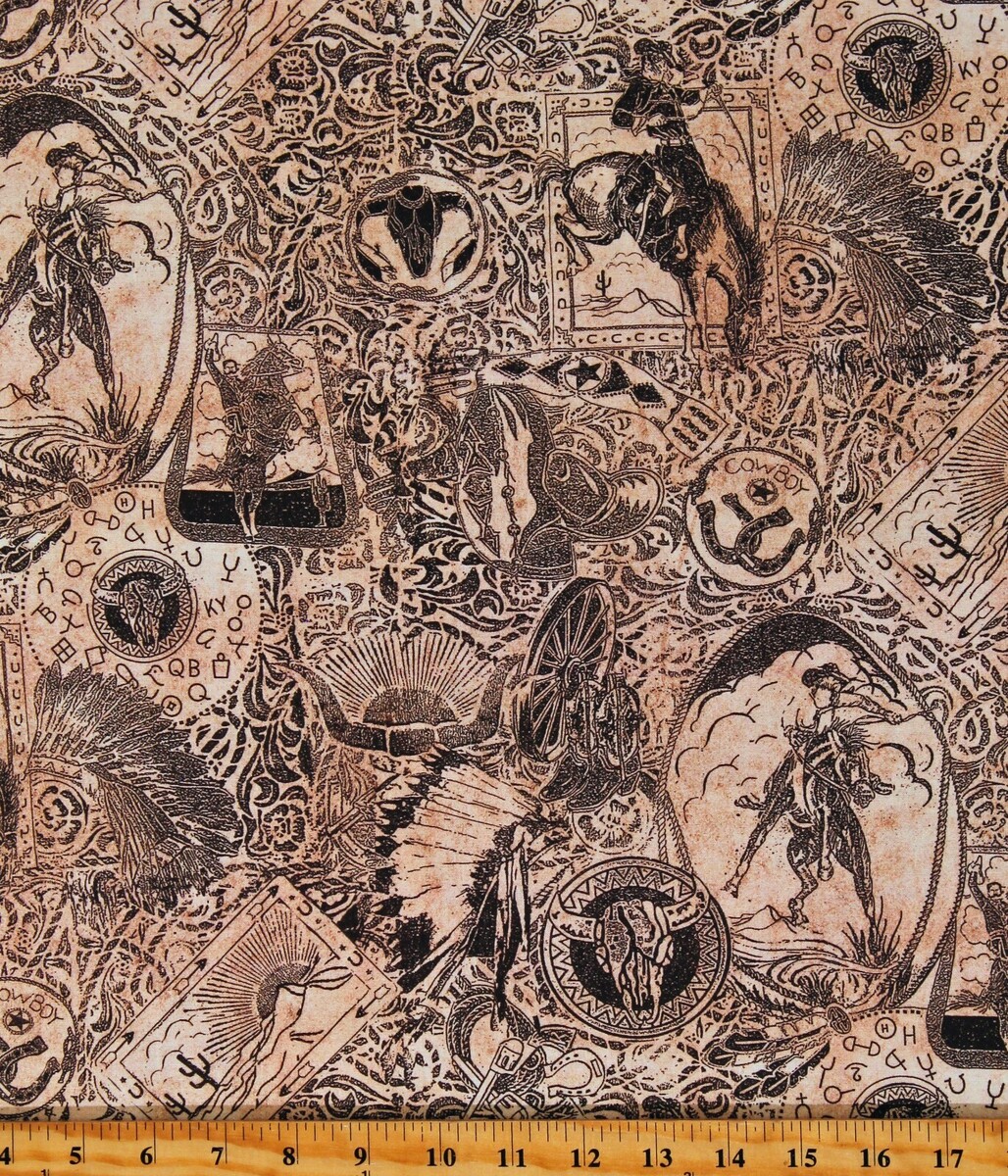 Cotton Western Cowboy Collage On the Range and similar items