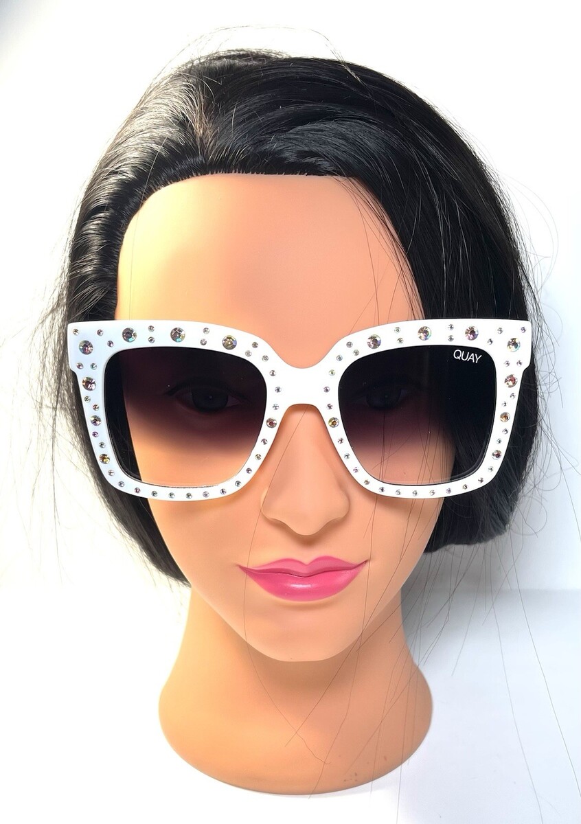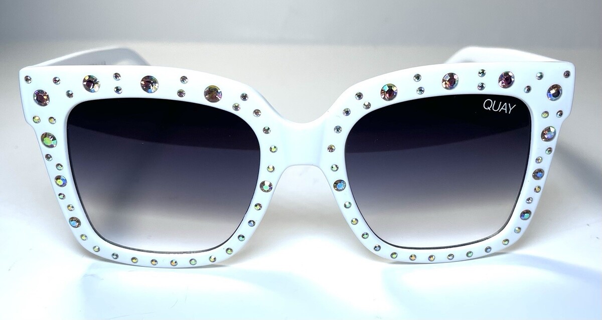 NEW QUAY White Icy Rhinestone Diva 126 Sunglasses + Case