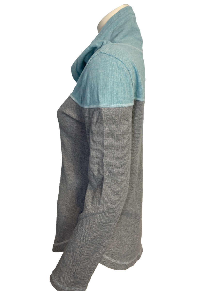 T by Talbots Green & Gray Color Block Relaxed Turtleneck Long Sleeve Pullover M
