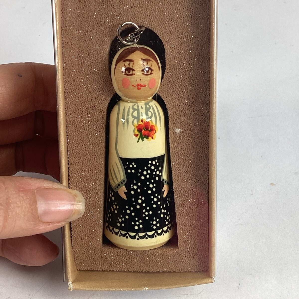 Skrina Handpainted Wooden Peg Doll Ornament In Original Box - Slovenia