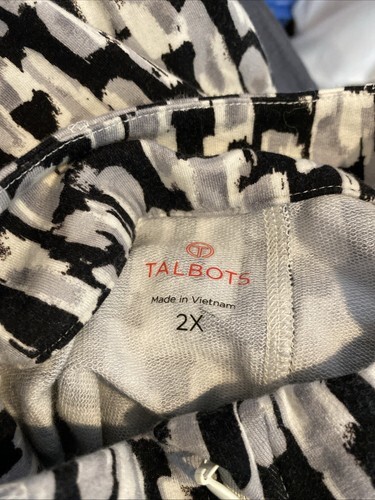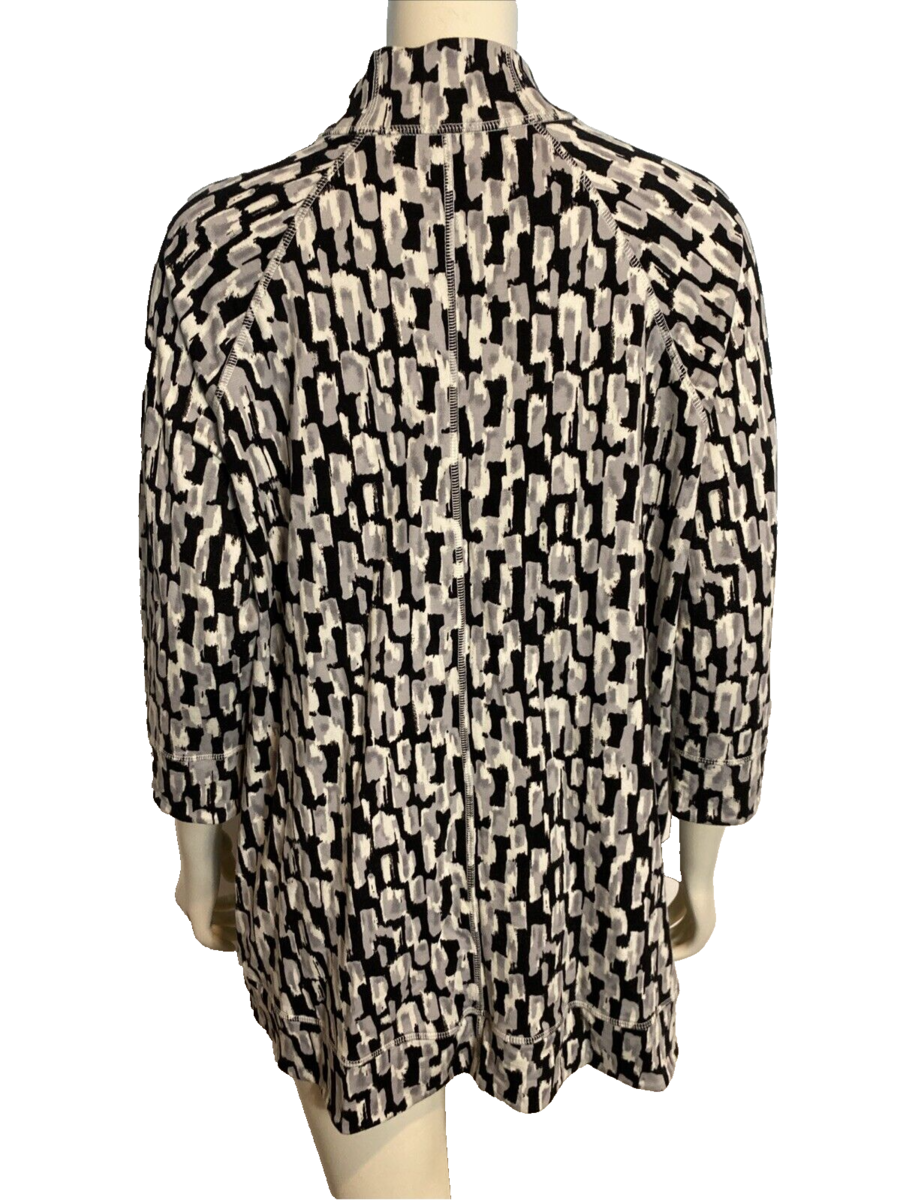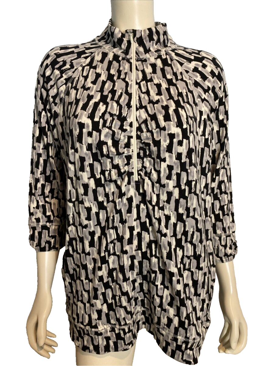 T by Talbots Black, Gray, White Print High Neck 1/4 Zip Top 2X