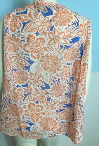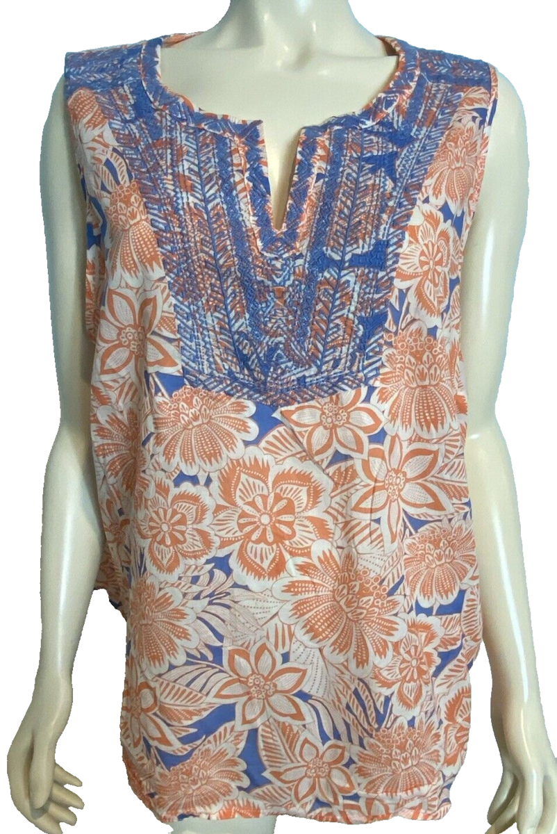 Talbots Woman Petites Orange, White, Blue Floral V Neck Sleeveless Size 3Xp