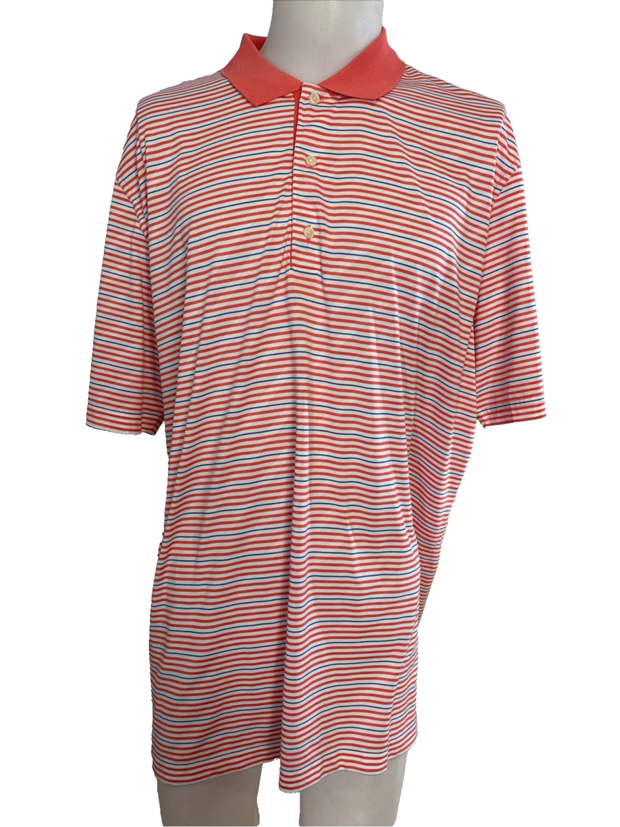 Greg Norman Play Dry Orange, White, Blue Striped Short Sleeve Golf Polo XXL
