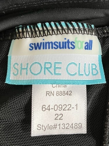 NWT Shore Club Swimsuits for All Black One Piece Swimsuit Size 22