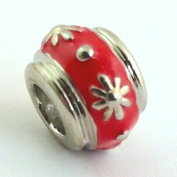 Lauren G Adams Hot Red Flowers Charm, Rhodium/Enamel, Fits All Brands