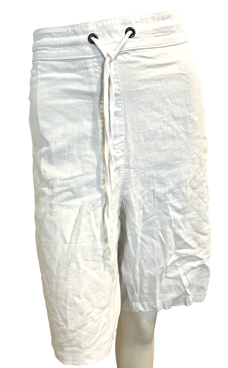 Per Se White Drawstring Waist Linen Blend Bermuda Shorts