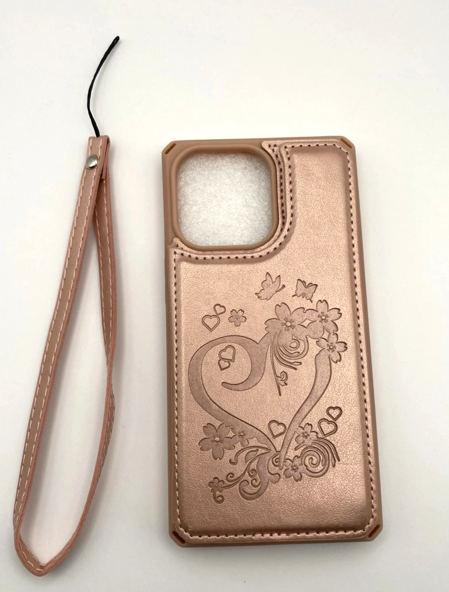 iPhone 13 Pro 6.1 Phone Case Rose Gold Embossed Faux Leather w/ Strap NEW