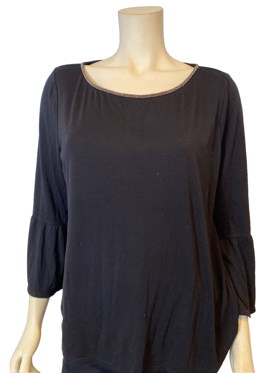 White House Black Market Black 3/4 Bell Sleeve Knit Top Embellished Neck Size L