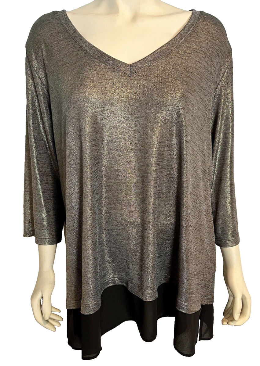 Karen Kane Women's Metallic V-Neck 3/4 Sleeve Top Gold/Black 3X