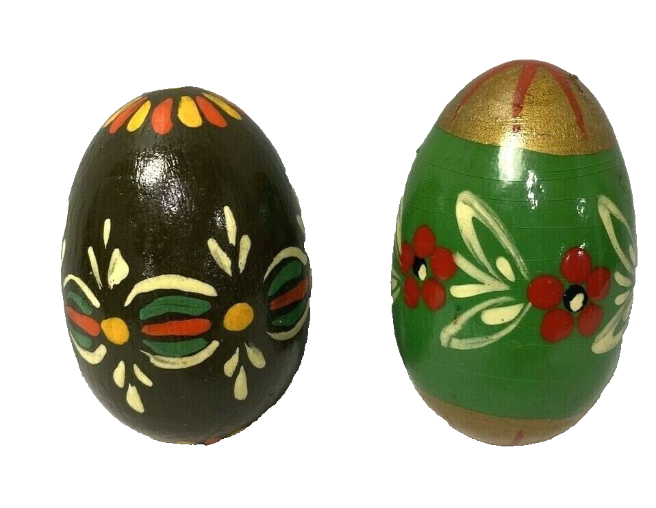 Vintage Eastern European Hand Painted Wooden Easter Eggs Lot of 2