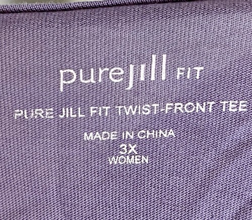 Pure Jill Fit Lavender V Neck Fit Twist Front Tee Size 3X