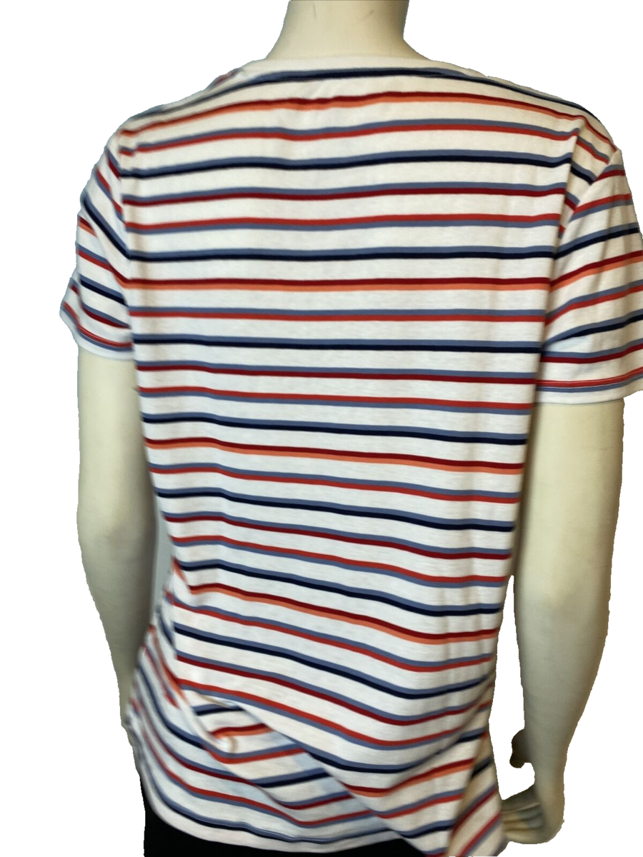 Croft & Barrow White, Red, Blue Striped V Neck Short Sleeve T Shirt Size XL NWT