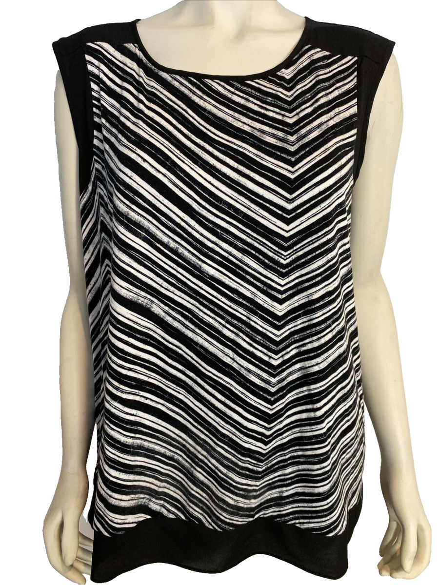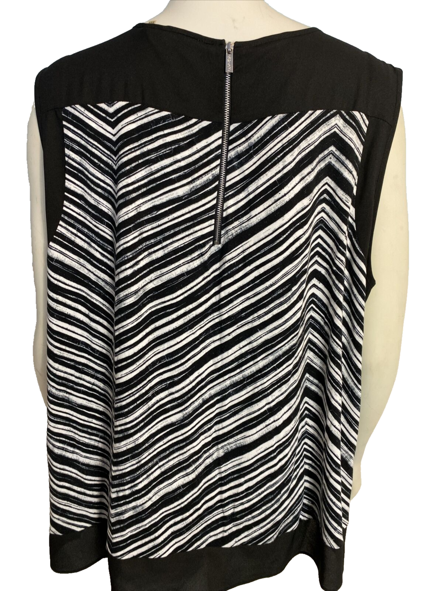 Calvin Klein Black and White Striped Scoop Neck Sleeveless Top Size 3X