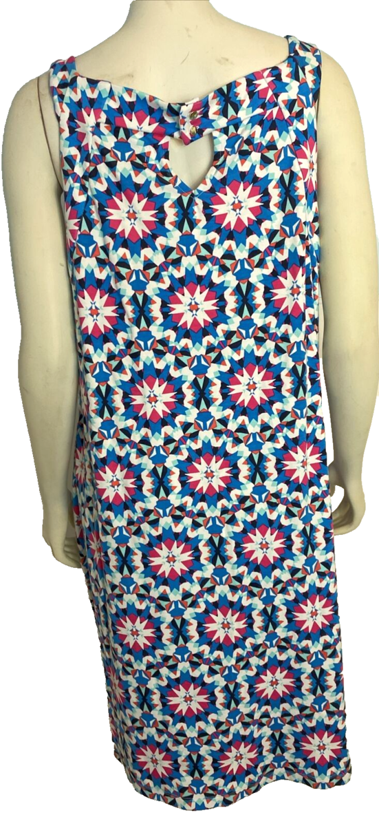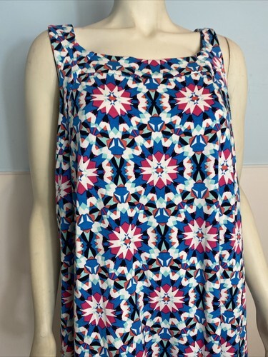 Crown & Ivy White, Blue Red Geometric Print Sleeveless Knit Pencil Dress Sz 3X