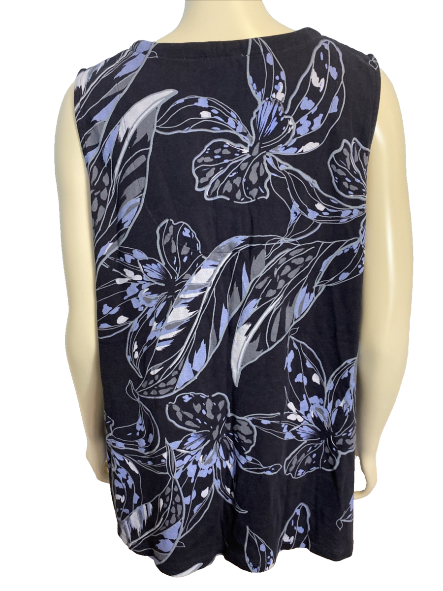 Chico's Blue Floral Sleeveless V Neck Knit T Shirt Size XL