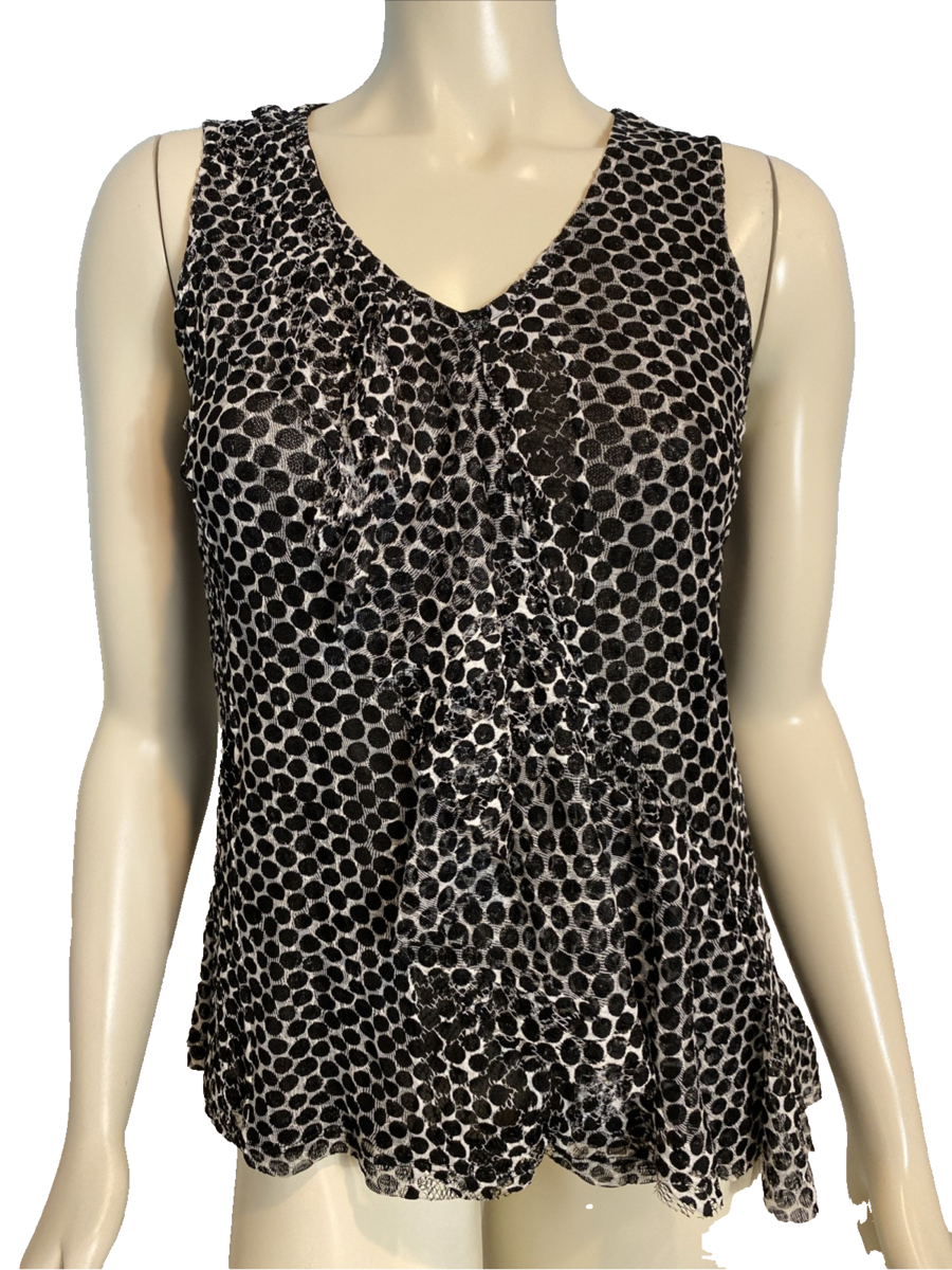 Chico Women's Dotted Mesh Alanis One Ruffle Tank Black/White Size Small NWT